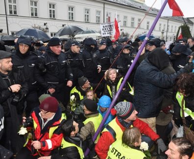 Złożenie zawiadomienia o możliwości popełnienia przestępstwa zapowiedział Paweł Kasprzak z ruchu Obywatele RP. Według niego podczas sobotniego zgromadzenia przed Pałacem Prezydenckim jego ruch został brutalnie wypchnięty z miejsca demonstracji. Policja wyjaśnia, że zapewniała bezpieczeństwo.\r\n\r\nRano, w 80 miesięcznicę smoleńską premier Beata Szydło, prezes PiS Jarosław Kaczyński, członkowie rządu, parlamentarzyści uczestniczyli we mszy św. w intencji osób, […]