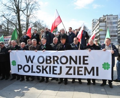 „W obronie polskiej ziemi” protestowało w środę w Warszawie pod pomnikiem Wincentego Witosa kilkuset rolników z całej Polski. Zarzucali PiS, że w procedowanym w Sejmie projekcie ustawy dokonuje zamachu na prywatną własność ziemi. Organizatorem protestu było PSL.\r\n\r\nW proteście uczestniczyli też przedstawiciele PO, partii Razem oraz KOD z jej przewodniczącym Mateuszem Kijowskim. Odśpiewano hymn i rotę. Do […]